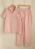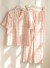 ・100%棉,触感舒适。 ・短袖长裤套装,适宜夏季居家穿着。 ・领口、袖口木耳边装饰,颜色清爽自然,上衣添加口袋,可爱实穿。